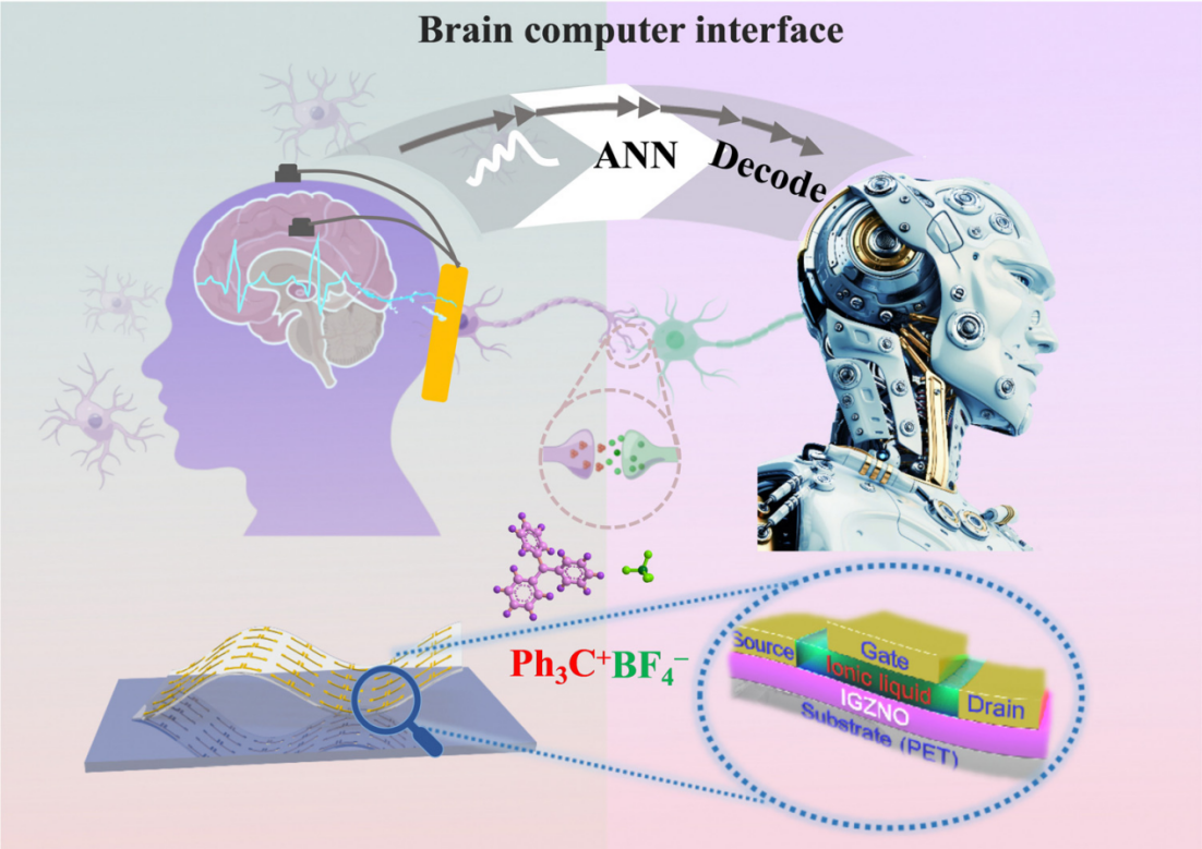 近日,我校宿杰课题组联合天津大学刘晶课题组在国际顶级期刊《Materials Horizons》(中科院大类一区,影响因子:13.3)上发表题为“Flexible In–Ga–Zn–N–O synaptic transistors for ultralow-power neuromorphic computing and EEG-based brain–computer interfaces”的研究论文(https://pubs.rsc.org/en/content/articlelanding/2023/mh/d3mh00759f/unauth)。青岛大学范双青为论文第一作者,青岛大学宿杰、天津大学“青年长江学者”刘晶教授为共同通讯作者。该项目得到国家自然科学基金、国家重点研发计划、“111计划”等项目的支持。研究团队成功开发出柔性In-Ga-Zn-N-O突触晶体管(FIST),与传统的刚性计算电路相比,FIST具有超低功耗和柔性特性。这项研究的关键在于实现了突触行为的有效可调性,从而促进了联想学习、记忆计算和认知功能的实现。这意味着FIST可以模拟海兔等生物的关联和非关联学习过程,为BCI系统的发展带来了巨大的潜力。研究团队还展示了使用基于FIST阵列构建的人工神经网络(ANN)进行模拟,FIST阵列可以对视觉诱发的脑电信号进行分类,识别准确率高达87.9%,对EMNIST-Digits的识别率在94.8%。这项研究的成果为建立基于脑电图的BCI系统提供了可行的途径,具有灵活性、实时内部编码能力和高分类准确率。这一突破性技术有望显著影响各种BCI技术的发展,为人类与外部人工设备之间的交互提供更广阔的可能性。