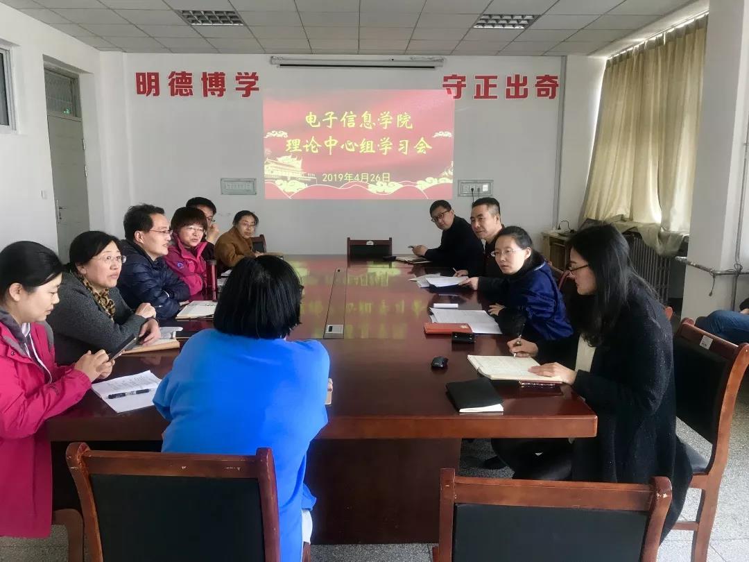 4月26日下午,pg游戏电子模拟器在诚思楼407会议室召开党委理论学习中心组(扩大)2019年第2次理论学习会。党委书记苗洪丽主持会议,学院党政领导、院长助理、各系党支部书记、主任、副主任、科级干部及全体管理人员参会。