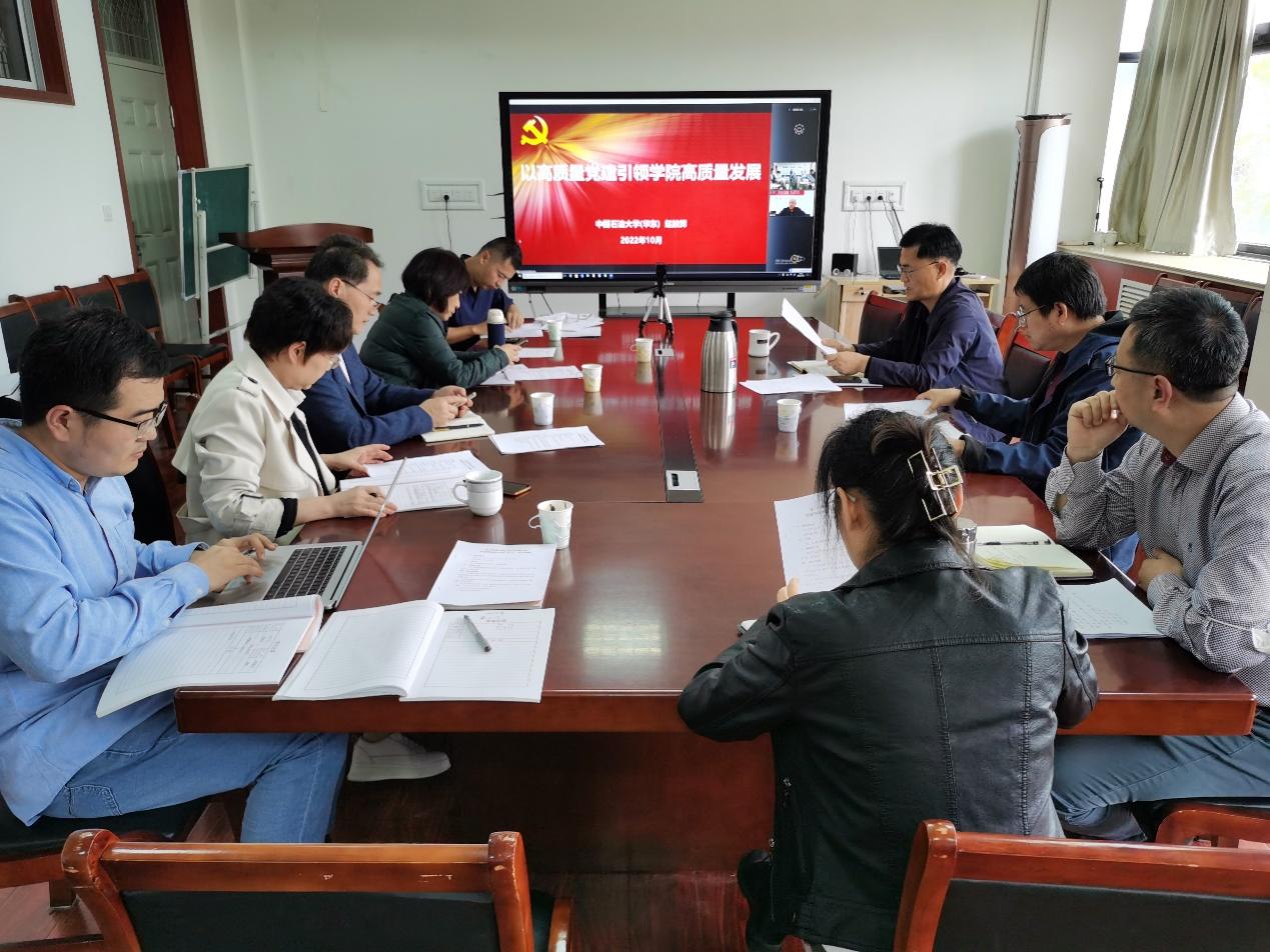 中国石油大学地球科学与技术学院党委书记赵放辉作主题为《以高质量党建引领学院高质量发展》的线上专题报告。赵放辉结合石油工程学院、地球科学与技术学院全国党建标杆院系建设情况介绍了党建双创经验和成果,围绕“一个共建”“三个结合”“三项工程”“五个到位”阐释了党建“双创”建设思路。从党建工作制度体系,优秀基层党建工作方法、典型案例,高校师生思想政治工作品牌、育人载体,高影响力宣传平台、网络阵地,学术研究,经验推广示范六个方面凝炼的“双创”实效,推动了一流党建和高水平学院建设的互动共进。