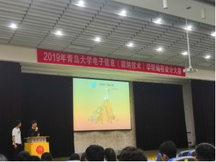 七支队伍按照顺序依次上台展示了他们精心设计的作品。他们借助自己制作的PPT和视频,用科学严谨的专业知识向大家讲解了他们作品的设计理念和初衷。能看出来每一组选手都对编程十分的热爱,围绕"爱国、爱校、爱青春"的主题,表达他们对国家、校园和青春的感情。