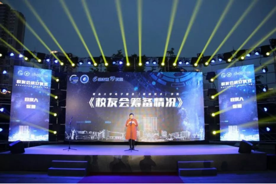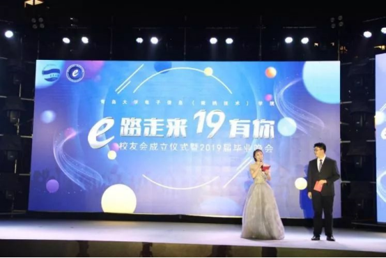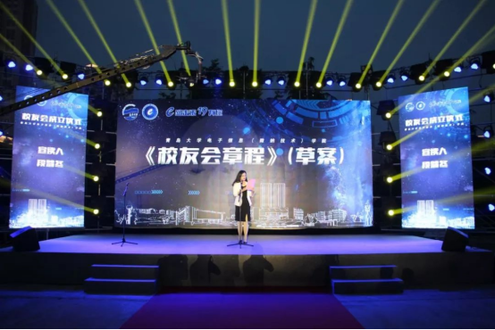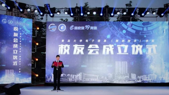 晚上七点,学院校友会成立仪式正式开始。主持人杨国庆老师登场,介绍在座领导与嘉宾。芯恩集成电路有限公司技术研发及知识产权中心副总经理、青岛大学特聘教授肖德元,青岛大学合作发展处副处长、校友办副主任曲绍阳,学院党委书记苗洪丽,院长迟宗涛,副院长单福凯,院长助理宿杰、蔡恩林,党政办、学工办、教科办主任和各系主任、教师代表及各专业的校友代表、2019届毕业生出席了仪式。