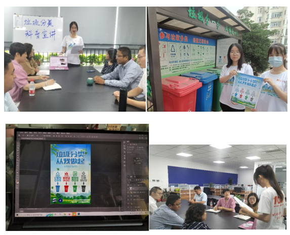 此外,团队成员将利用PS技术制作的垃圾分类宣传海报张贴在社区宣传栏,并在街道、社区分发垃圾分类宣传页,向居民讲解垃圾分类知识。此外,还在垃圾分类站点,对投放垃圾的居民进行一对一指导、纠正。