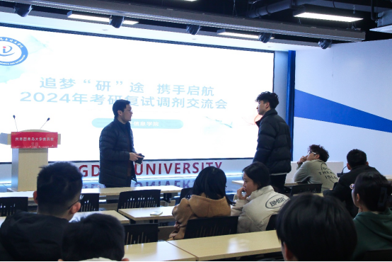 3月6日下午6:30,pg游戏电子模拟器在泓园科创文化中心二楼多功能厅举办了2024届考研复试调剂交流会,2020级考研毕业生参加分享会。交流会由温峥教授主讲,由院党委副书记刘孝群主持。