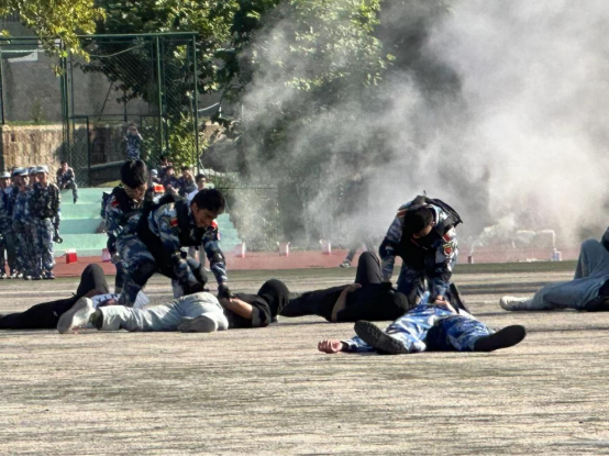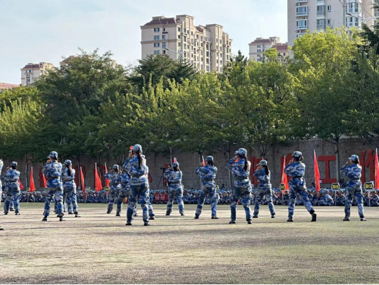 攻防演练,参演新生精神抖擞,动作熟练且协调,充分展示了军训成果。在教官的指导下,同学们迅速展开队形,进行了一系列模拟实战的攻防动作。新生们面对模拟的敌情反应迅速、操作规范,有效地执行了各种战术指令,展示了青大学子英勇善战的优良品质。
