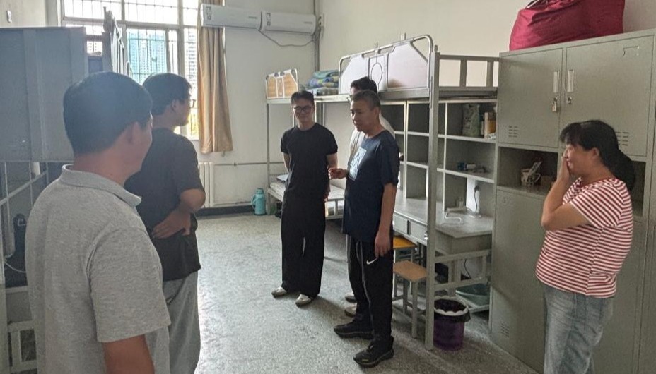 新生辅导员潘志奎、吕浩伟也走进宿舍,细致询问同学们在适应校园生活过程中的困惑与期待,并解答大家对学业规划的疑问。同时,他们耐心提醒新生注意用电安全、保持宿舍环境整洁。每一声关怀、每一句嘱咐,都在师生之间架起了温暖的桥梁,拉近了心与心的距离。