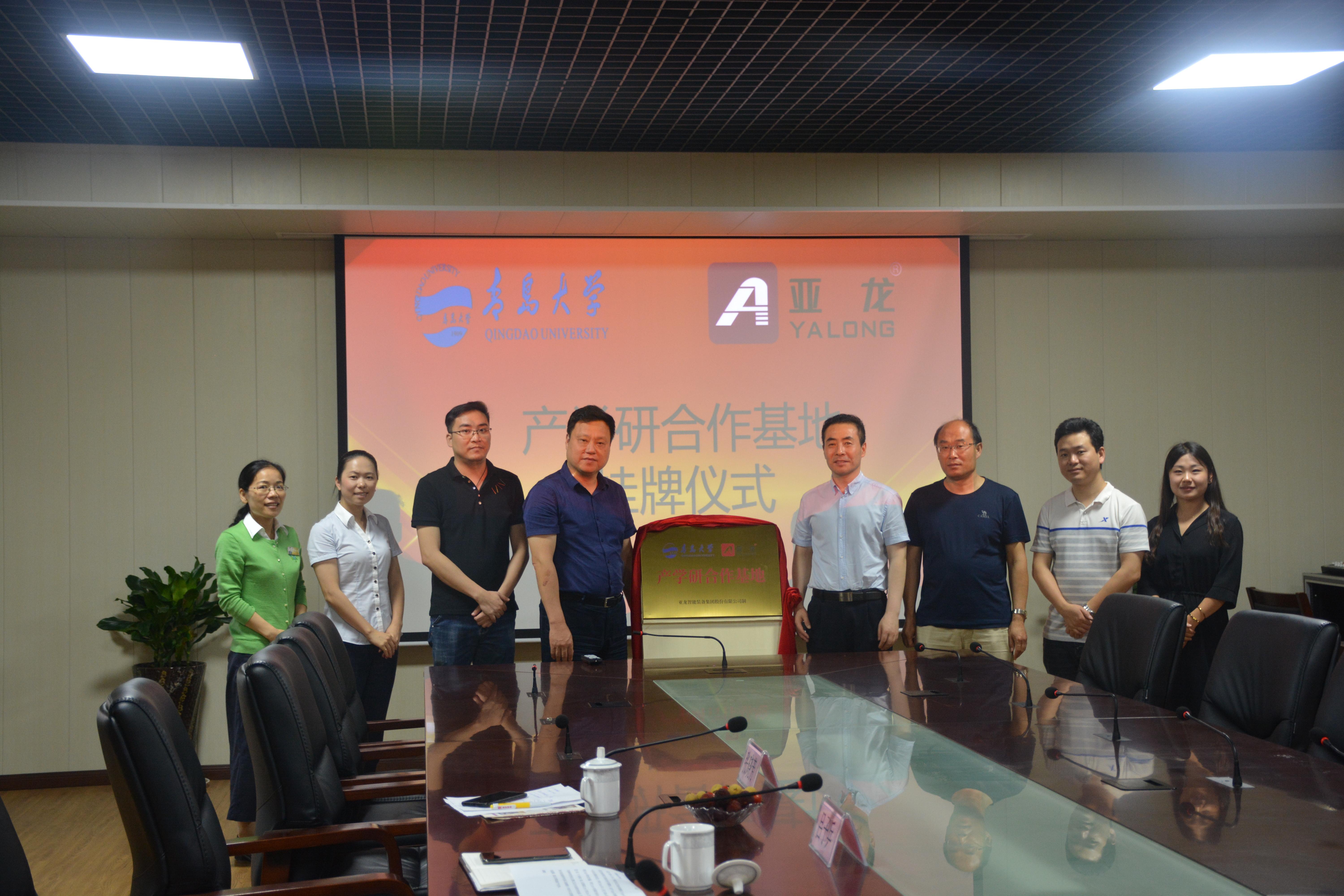 亚龙智能总经理陈传周对学院到访表示热烈欢迎,陪同参观了机器人研发过程和生产车间,希望在人才培养、产学研等方面与学院加强合作。研发二部经理刘海周介绍了企业及产品简介。迟宗涛介绍学院的人才培养、科学研究、社会服务、合作交流等情况。双方就共建产学研合作基地、项目合作、知识转化、人才培养与支持方面进行了深入探讨,共同为青岛大学亚龙智能产学研合作基地揭牌。
