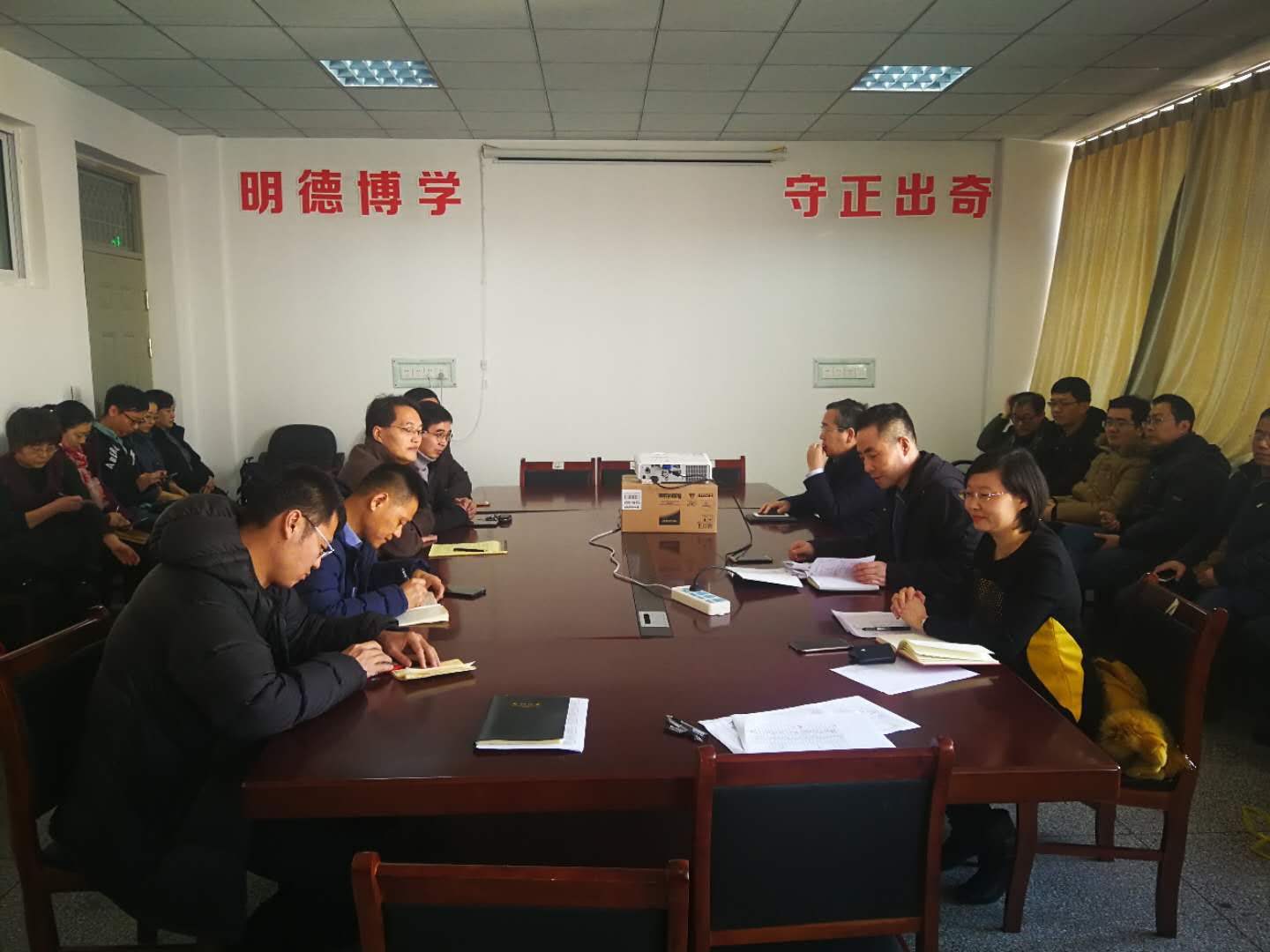 党委书记苗洪丽传达校党委理论学习中心组(扩大)2019年寒假学习会和2019春季学期中层干部学习研讨班会议精神,对胡书记《落实学院办大学理念增强学院办大学能力》主旨报告提到的抓好九项工作和处理好九个关系做了传达解读,对夏校长总结讲话精神和2019年七项重点工作结合学院实际做了分解落实。