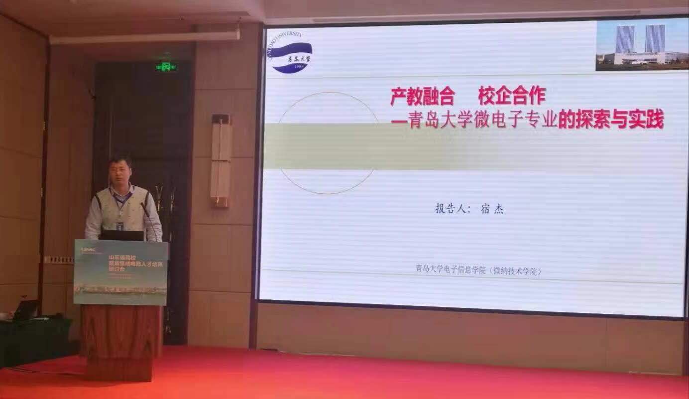 pg游戏电子模拟器(微纳技术学院)作为省集成电路人才培养联盟副理事长单位应邀出席会议,并应邀做大会报告《产教融合、校企合作—青岛大学微电子专业的探索与实践》。报告主要有三个主题:青岛大学微电子专业的发展历程、青大与芯恩开展的校企合作经验、微电子专业所遇到的挑战。