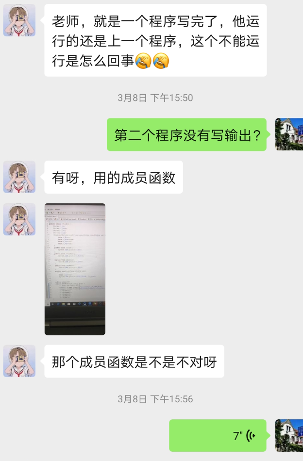 贺英老师会及时进行作业批改和在微信答疑,督促和鼓励学生不松懈、不放弃。即使是深夜或者周末,她也会热情地给学生回帖答疑,甚至直接视频连线让学生重复操作,发现问题所在,并引导学生按正确方法解决问题。在线答疑的效果可以像在教室里现场答疑一样。班级一共41名学生,她尽可能兼顾到每一名学生的学习状态。每节课课前都提前通知学生上课、答疑时间,让学生有良好的状态。