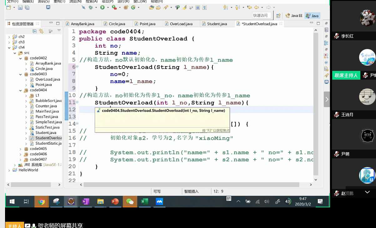 2020年春季学期,贺英老师承担了pg游戏电子模拟器2018级通信工程专业的一门本科生课程《Java程序设计》和一门研究生课程《数据挖掘》。贺英老师为了提升自己的网络教学水平,提前观看学习清华大学等许多优秀的网课教学培训讲座,并且向有网课经验的同事请教。在“慕课教学+课堂答疑”、“雨课堂+PPT音视频录制”、“直播授课+在线练习和答疑”等多种教学方式中,根据程序设计类课程的特点,选择了直播授课的方式。课前模拟上课环境组织学生多次测试,贺英老师对比了腾讯会议、腾讯课堂、钉钉视频、BiliBili直播、QQ群视频等教学工具的性能,最终选择了实时效果好、互动方便的腾讯会议进行直播教学。