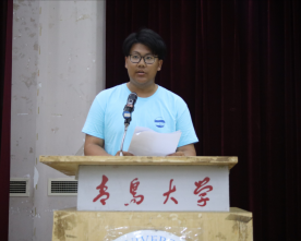 2017级优秀学生代表郝彦阔上台发言,代表学院全体在校生对新生表示热烈的欢迎。结合自身经历,分享了经验,希望新生明确奋斗目标,夯实专业基础,积极参加学科竞赛,不畏困难,敢于挑战,越努力,越幸运。