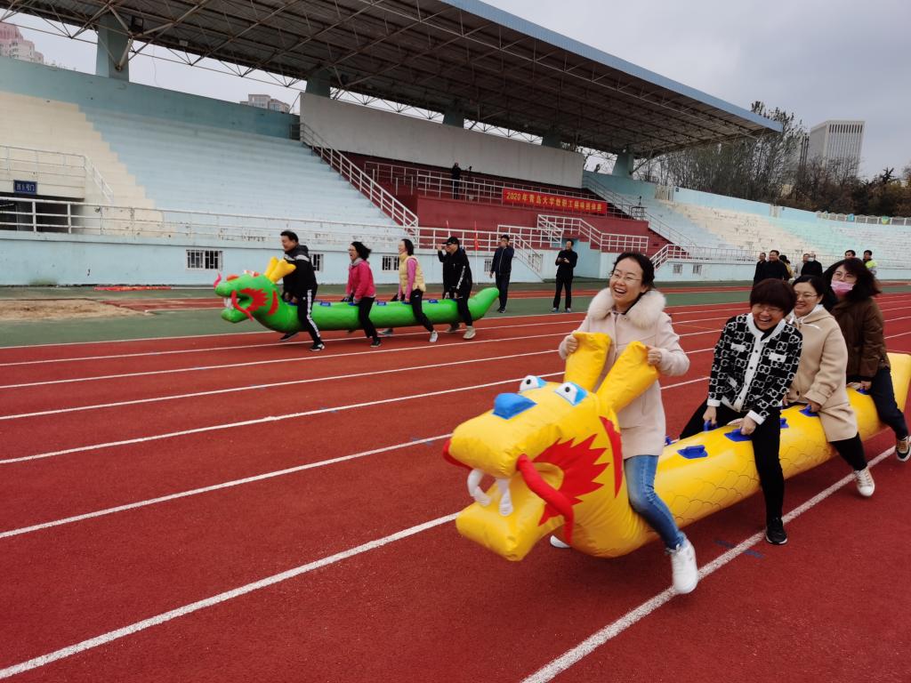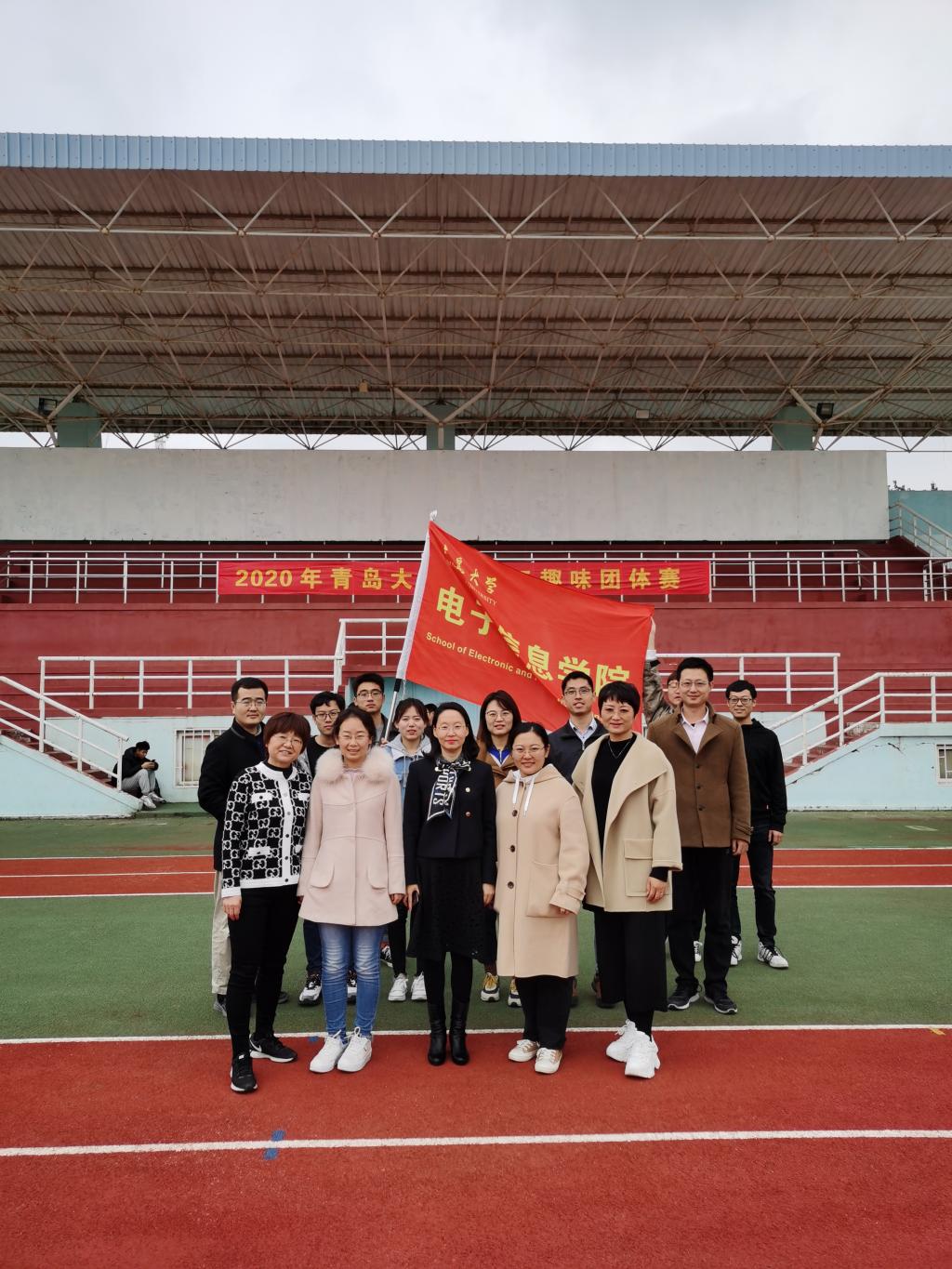 11月19日下午,青岛大学教职工趣味团体赛在西院体育场举行,pg游戏电子模拟器工会16位教职工本着“运动,更健康”的精神,在苗洪丽书记的带领下参加了骑长龙和全场运球投篮接力赛两个项目的比赛。