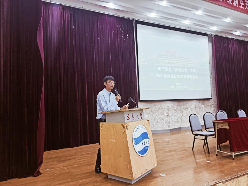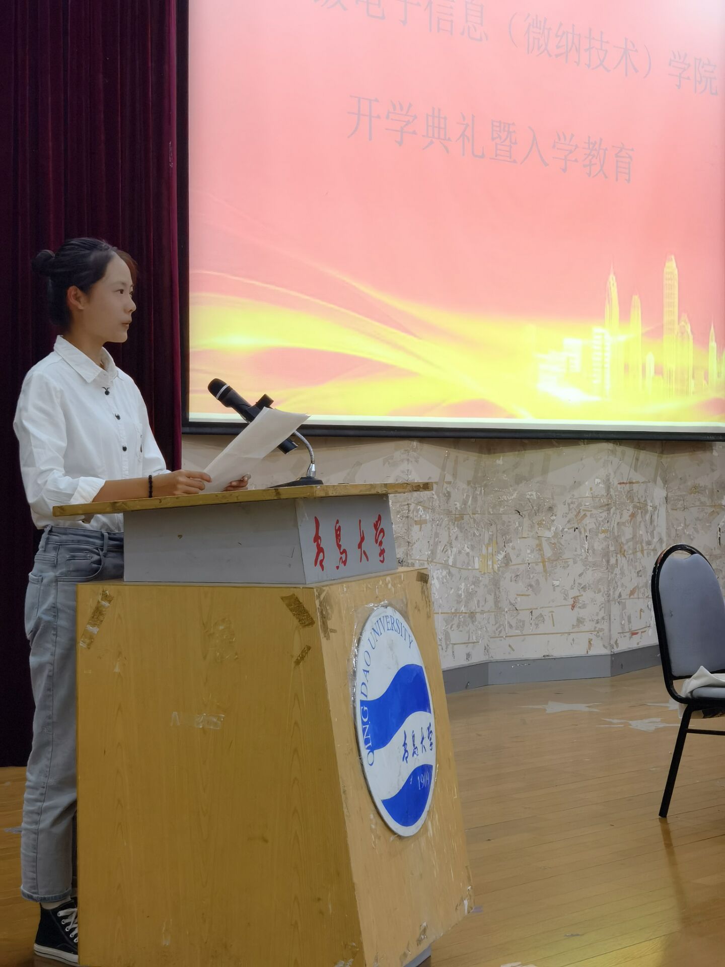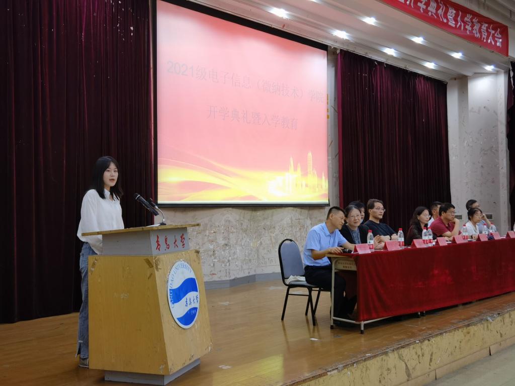 pg游戏电子模拟器官网党委书记苗洪丽代表全院师生,热烈欢迎2021级全体新生的到来。她向新生介绍了学院的发展历程与总体情况,她表示,电子信息(微纳技术)学院是一个朝气蓬勃、极具发展潜力的学院。她提几点希望与大家共勉,一是守正创新、砥砺作为;二是勤勉务实、潜心躬行;三是内外兼修,健全品格。希望大家牢记嘱托、不负韶华,在知识传授、能力培养、素质提升、品格塑造的有机结合中始终追求“德才兼备、全面发展”,以不懈奋斗擦亮青春底色、叩响未来之门!