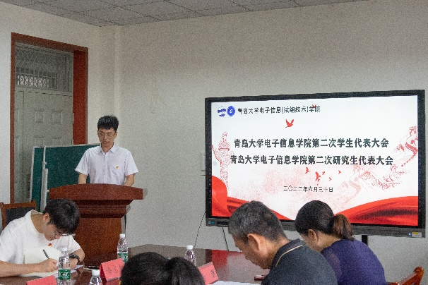 6月30日,pg游戏电子模拟器第二次学生代表大会、第二次研究生代表大会于诚思楼407顺利举行。院党委副书记刘孝群、院团委负责人赵晓辉、全体辅导员及全体学生代表出席大会开幕式。本次大会由陈欣荣主持。