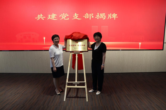 党委统战部党支部书记王春光和通信工程系党支部书记许丽艳为共建党支部揭牌