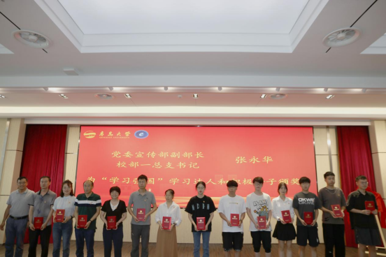 张永华为获得学院“学习强国”学习达人和学习积极分子颁奖