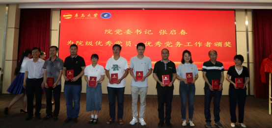 张启春为“院级优秀共产党员”“院级优秀党务工作者”教师党员颁奖