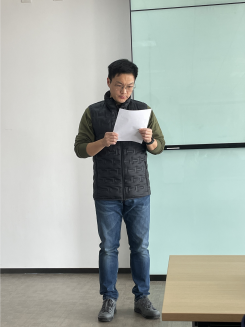 张子旸教授做报告前,主持人温峥教授对张子旸教授的科研背景做了简单介绍。张子旸教授曾任日本东京工业大学JST研究员、加拿大阿尔伯塔大学Alberta Ingenuity Fellow、英国国家三五族半导体中心研究员、中科院苏州纳米所研究员、国家重点人才工程入选者、333高层次人才及苏州园区海外高层次领军、科技领军人才等荣誉称号,并且在青岛上合示范区创办翼晨镭硕科技有限公司。