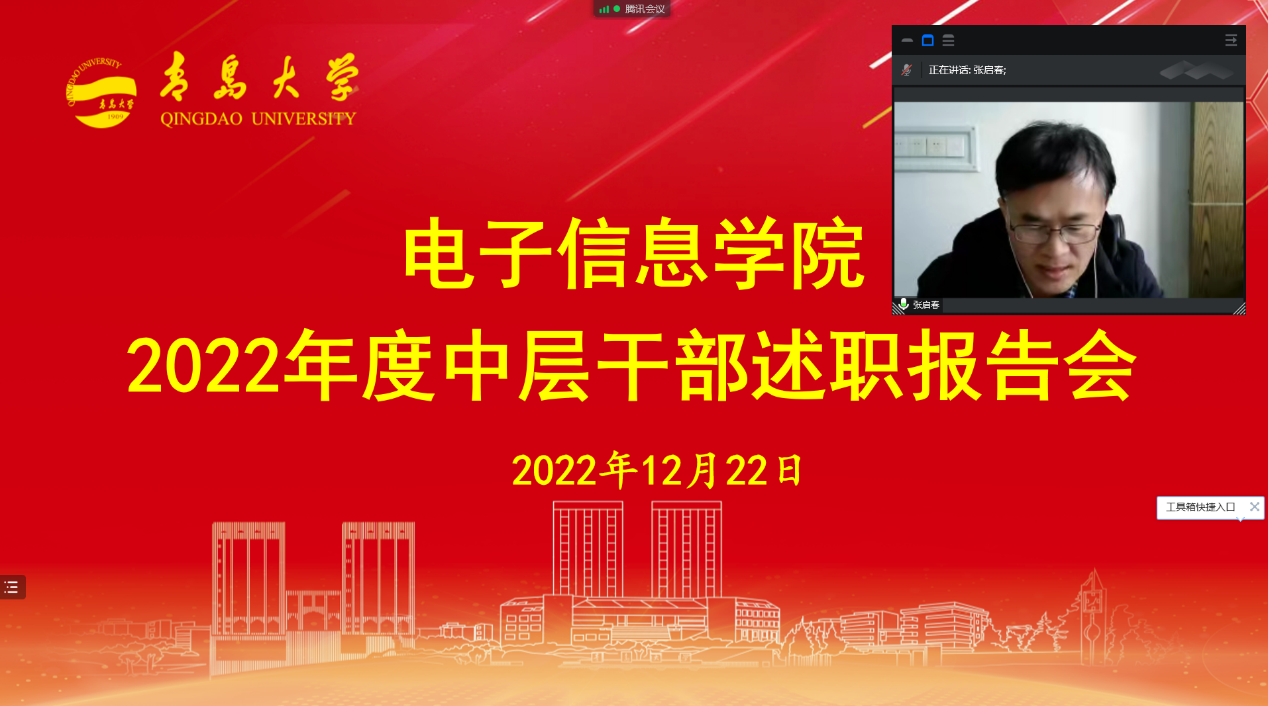 根据学校统一安排,12月22日下午,学院通过腾讯会议召开2022年度中层干部述职报告会,张启春主持会议,学院全体教职工参加会议。