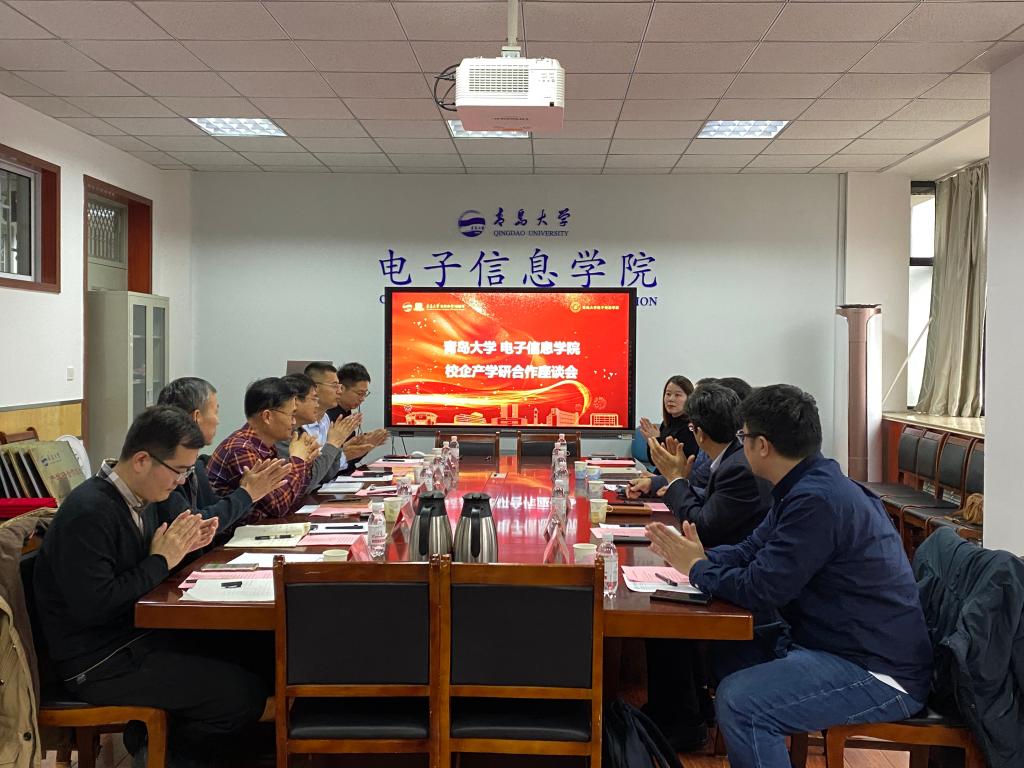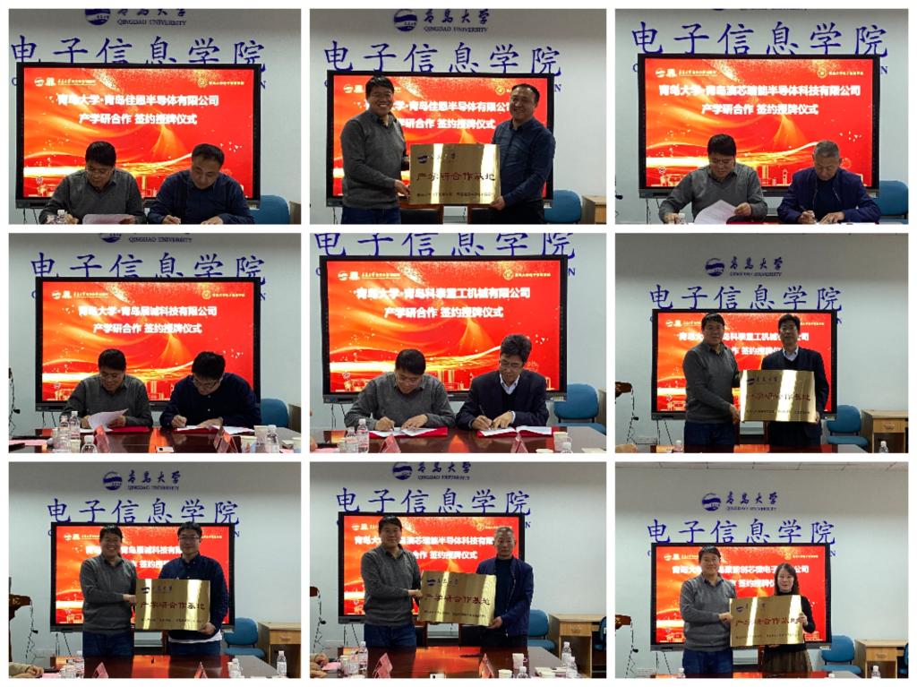 为拓展学生就业渠道,开拓实习实践基地,增强学院专业学科服务青岛电子信息产业能力,12月14日,pg游戏电子模拟器在诚思楼407会议室举行校企产学研座谈交流和集体签约授牌仪式。青岛佳恩半导体有限公司董事长王丕龙、青岛澳芯瑞能半导体科技有限公司董事长刘辉、青岛科泰重工机械有限公司总经理姚录廷、青岛展诚科技有限公司副总经理张小龙、青岛聚能创芯微电子有限公司销售经理阎艺,学院班子成员及骨干教师代表出席会议。