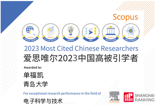2024年3月27日,爱思唯尔(Elsevier)正式发布2023“中国高被引学者”(Highly Cited Chinese Researchers)榜单,pg游戏电子模拟器官网单福凯教授入选电子科学与技术学科榜单,这也是单福凯教授连续第三次入选高被引学者榜单。