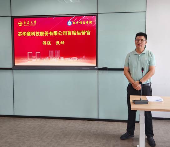 芯华章首席运营官傅强详细讲解了集成电路产业的历史沿革、发展方向与市场趋势,对公司的运营发展状况,校企合作情况及未来企业发展方向进行阐述,并列举了开发硬件仿真系统、FPGA原型验证系统、智能场景验证、形式验证、逻辑仿真、系统调试以及验证云等事例。他表示,芯华章公司高度重视与高校的合作,期待通过此次合作,将自身在电子设计自动化(EDA)领域的技术优势与青岛大学的学科和科研优势相结合,开创更多创新成果,为行业发展贡献力量。