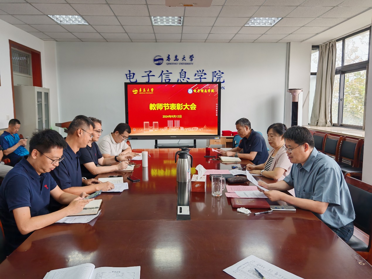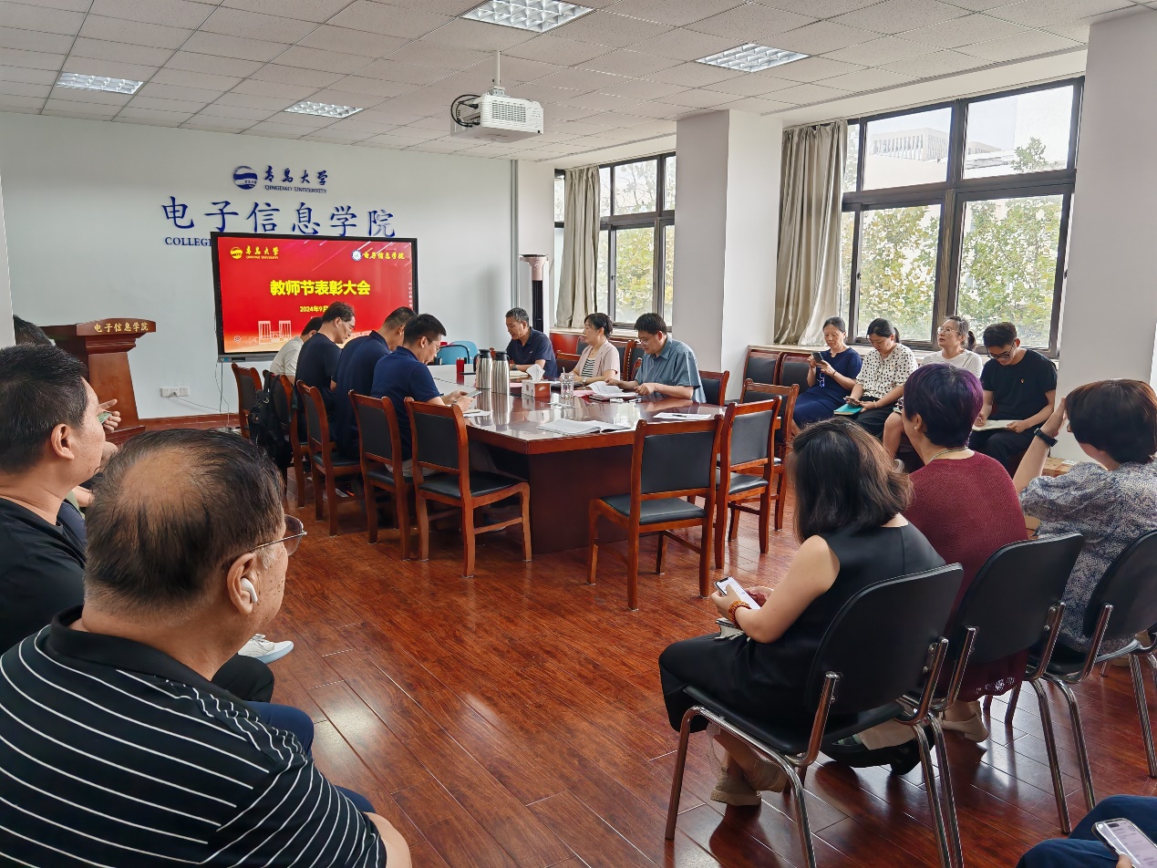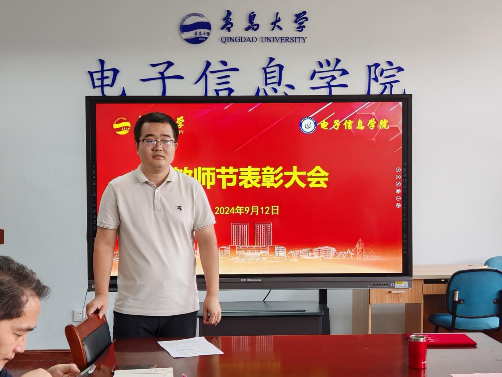近期,学院在407会议室举行2024年教师节表彰大会,隆重表彰了过去一年中在人才培养、科学研究和管理服务等方面表现卓越的教师代表。会议由党委副书记刘孝群主持,全体教职工和学生代表参加。
