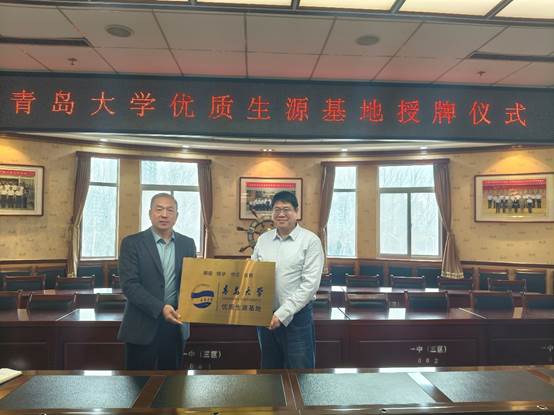 张启春和李山东分别代表青岛大学分别与两所中学签署了优秀生源地合作建设协议,并进行了优质生源基地揭牌仪式,不仅是对中学教育质量的认可,也是双方深化合作、共育英才的重要举措。