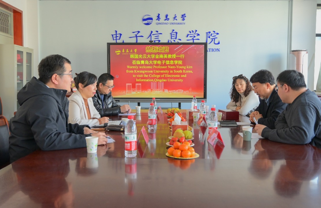 孙丽娜对金南英教授一行来访表示热烈欢迎,她简要介绍了青岛大学的办学历史与pg游戏电子模拟器的基本情况。她表示,青岛大学始终坚持开放办学的理念,积极寻求国际合作机会,前期与光云大学在中韩集成电路创新型人才国际合作培养项目方面已取得很好的成效,期望通过进一步的深度合作,整合双方在电子信息领域的学科优势,为学生搭建更多元化的国际化教育平台,提升学生的国际视野与竞争力。