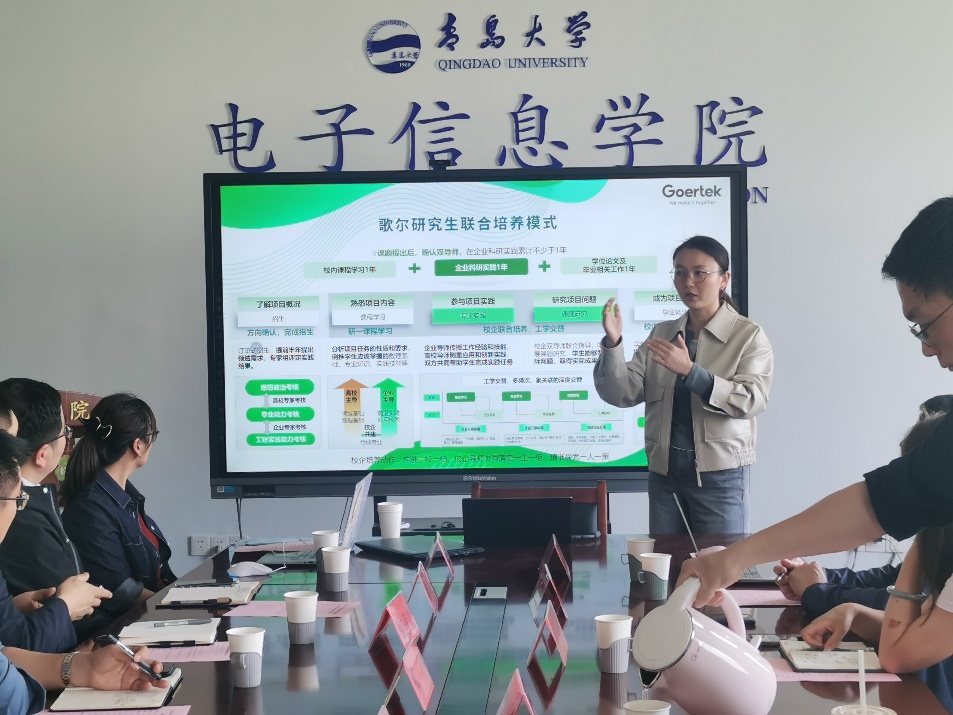 歌尔股份校企合作经理马琳娜在发言中表示,企业与高校的紧密合作不仅有助于技术创新,更是推动行业发展、实现人才强企的重要途径。通过联合培养,将为企业输送具备实战经验与创新能力的高水平工程师,助力企业可持续发展。
