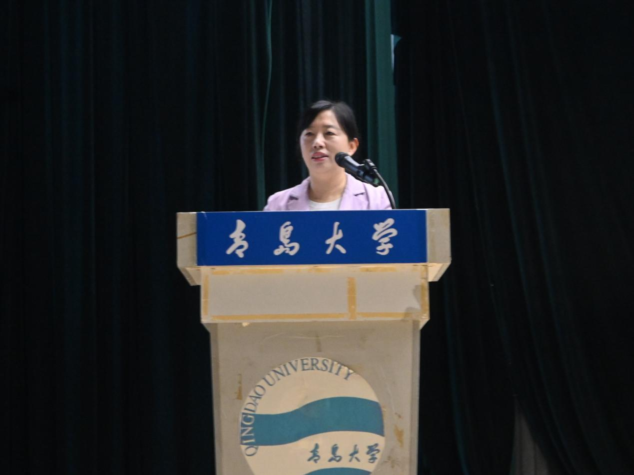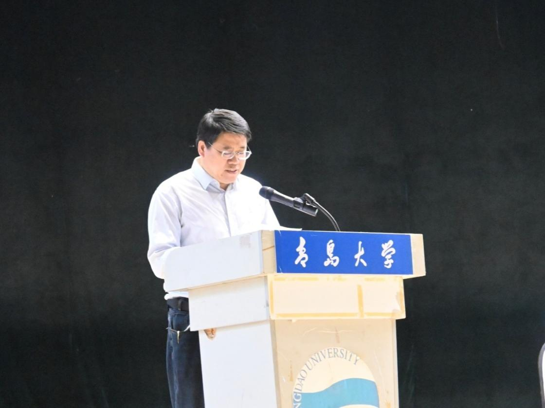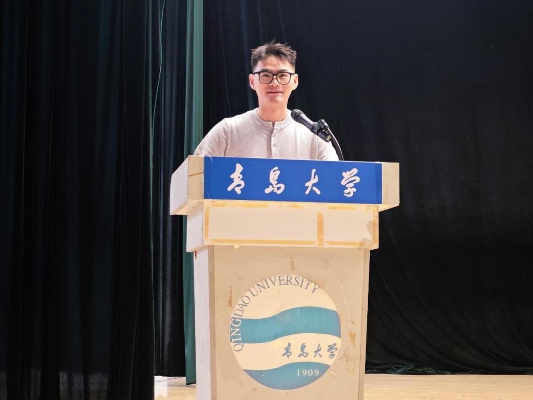 2025级新生代表汤婉婷回顾了高考拼搏历程与军训磨练,表达了对大学专业学习的憧憬与规划。并号召同学们夯实基础、强化实践、知行合一,在“明德、博学、守正、出奇”校训精神的指引下,在青岛大学书写无悔青春。