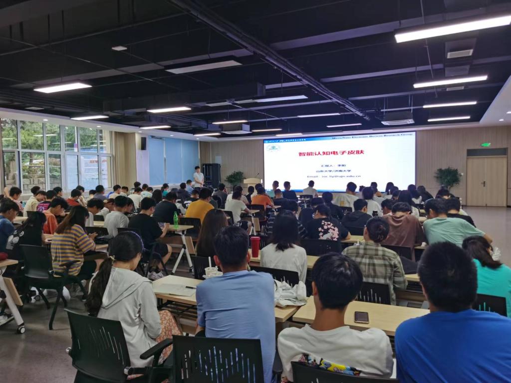 2022年7月6日下午14:00-17:00,在同学们热烈的掌声中, 济南大学信息学院团队带头人李阳教授给电子信息(微纳技术)学院师生带来一场题为《柔性智能电子感知皮肤》的高端学术报告。
